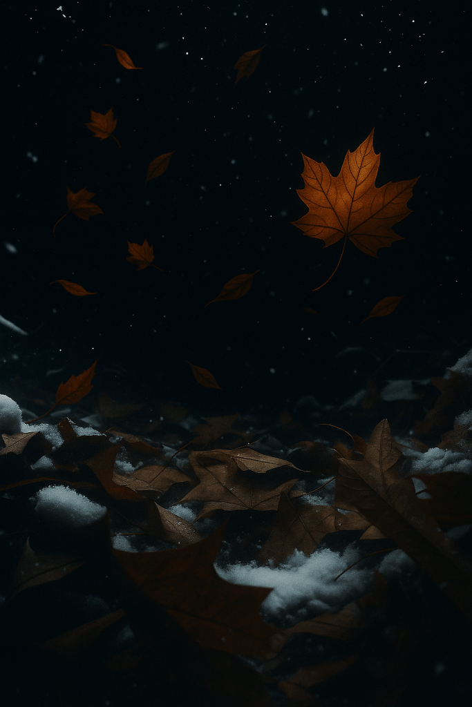 Then the air changes. The drop in temperature that feels like a warning whispered through clenched teeth. Snow flurries start to sting my face. My breath fogs the air, proof I’m still here… for now. I lean into the dark, eyes straining to find a shape, a reason. Nothing. Just a swirl of leaves and snow blends into a void. It looks a lot like the part of me I keep pretending isn’t there. The dark has a way of talking when you’re alone long enough. It pulls, grips your collar, drags you toward the pit with promises you don’t want to hear. Doesn’t matter how hard you dig your heels in… it’s stronger. Been that way for a while. Too long. and yet here I am.